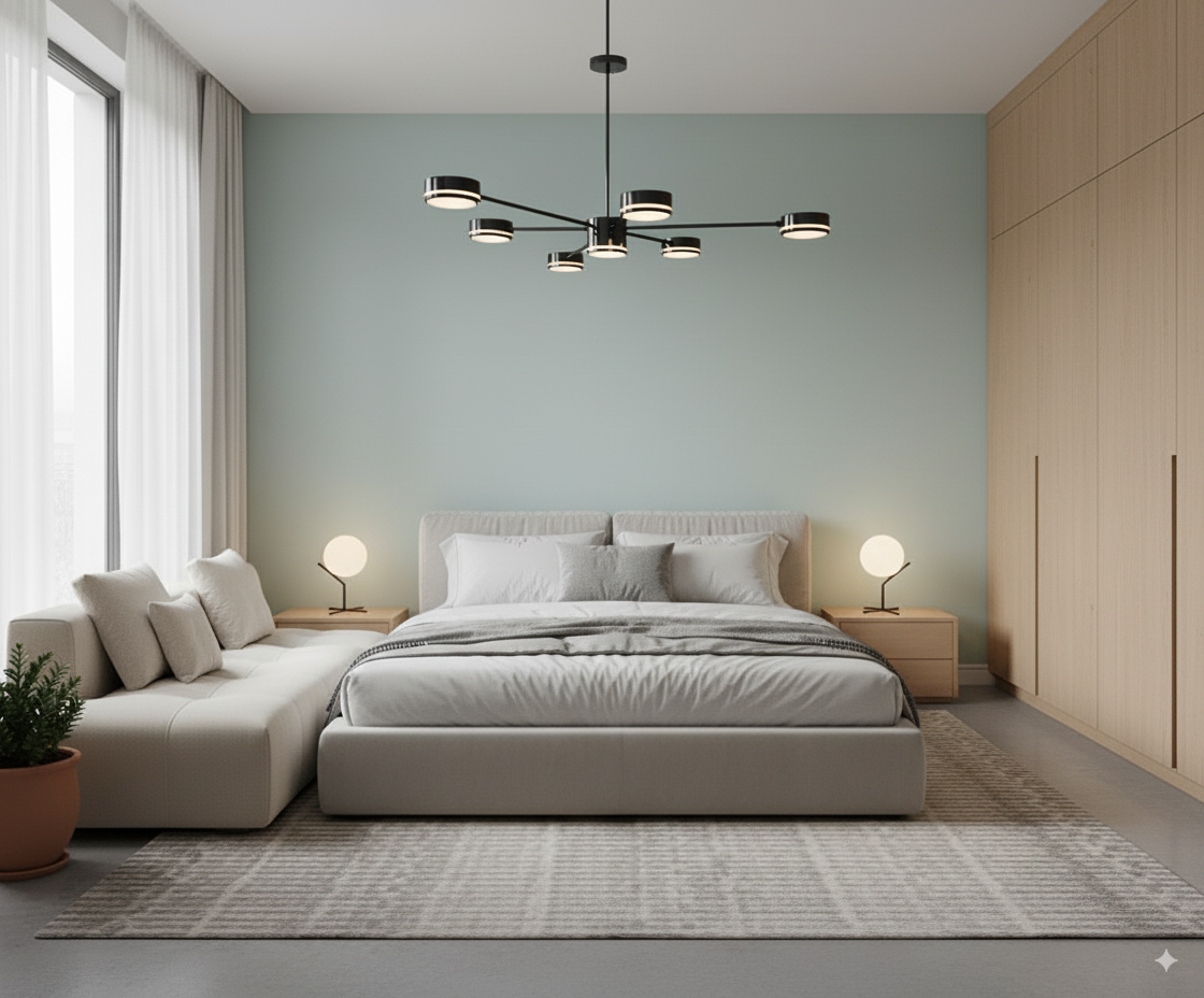 لوستر مدرن هفت‌شعله مشکی با نور سه‌حالته SMD